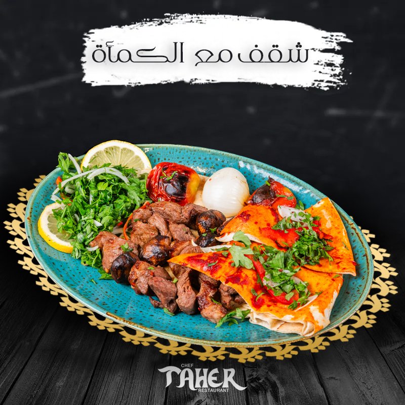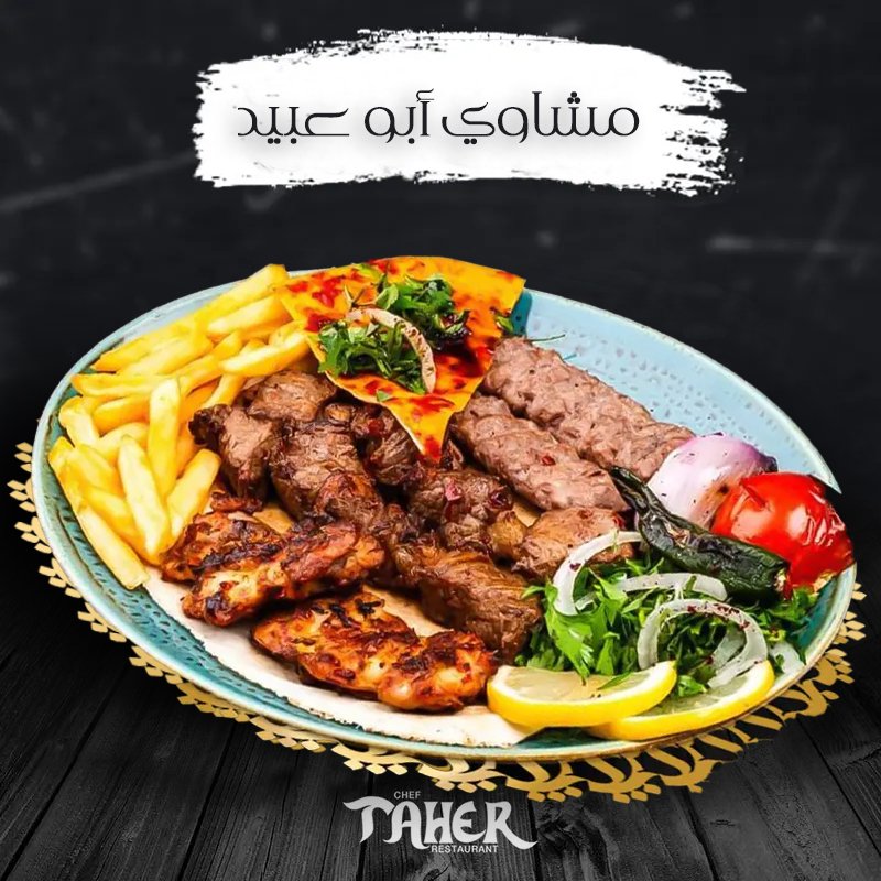 طبق من اللحوم المشوية التقليدية يتضمن : كباب لحم، قطع من الشيش طاووق، قطع من فتايل الغنم، مع تشكيلة من الخضارالمشوية (طماطم،بصل) يقدم مع صلصة الثوم والبطاطا المقلية.